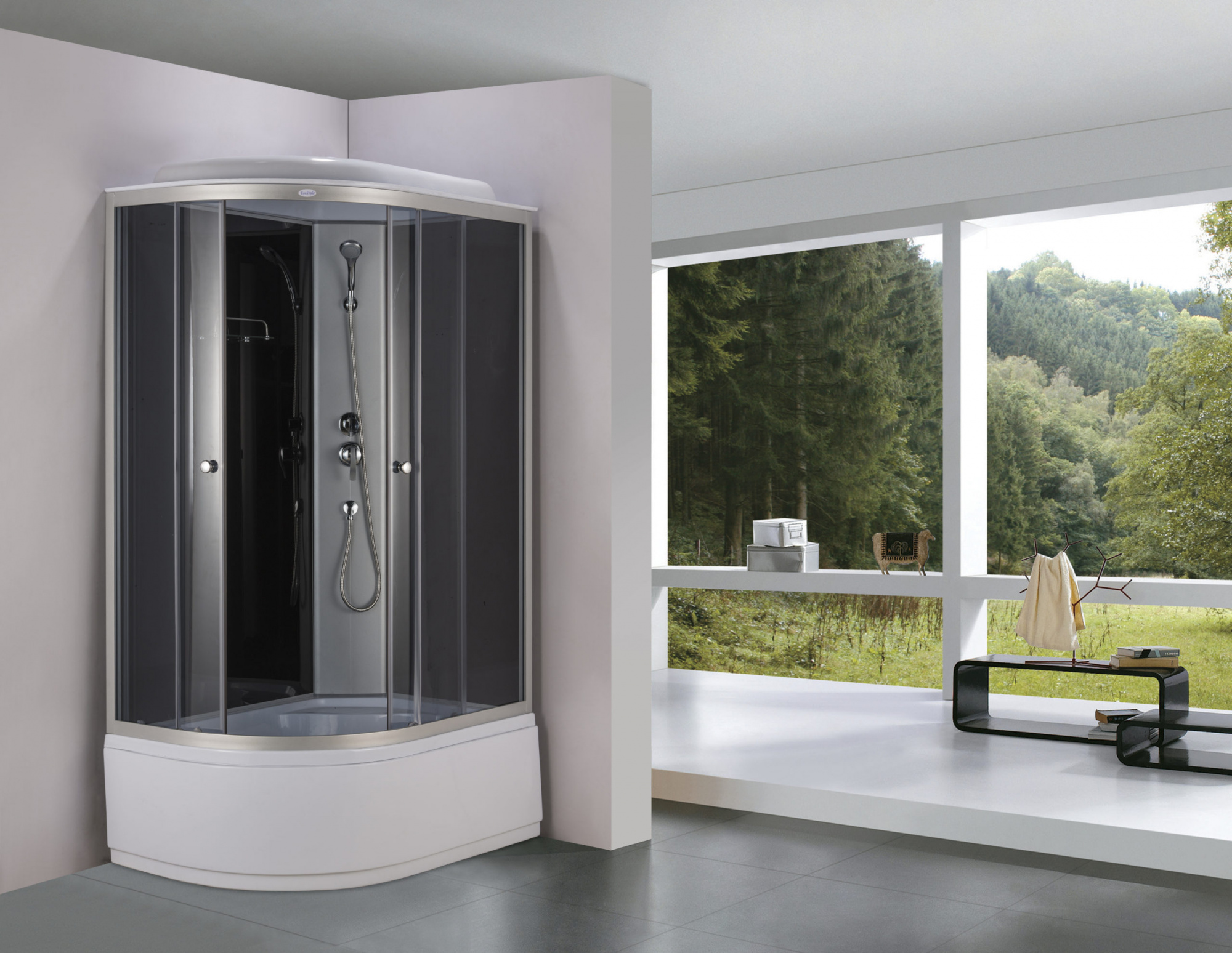 | Комплектация | Регулируемые дверные ролики||Двухрежимный смеситель||Слив с сифоном полуавтомат |