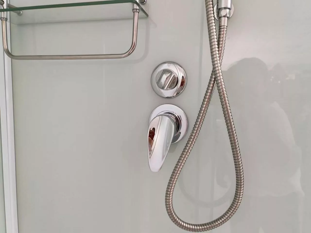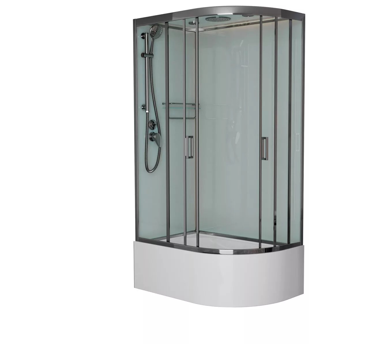 Душевая кабина Frank F412/2L М Brilliant левосторонняя высокий поддон от немецкого производителя Frank – комфортная и просторная модель. Закаленное стекло толщиной 5 мм надежно фиксируется алюминиевым профилем. Конструкцию устанавливают на акриловый поддон. В комплекте душевой гарнитур, сифон, вешалка, смеситель, полочка, тропический (верхний) душ.